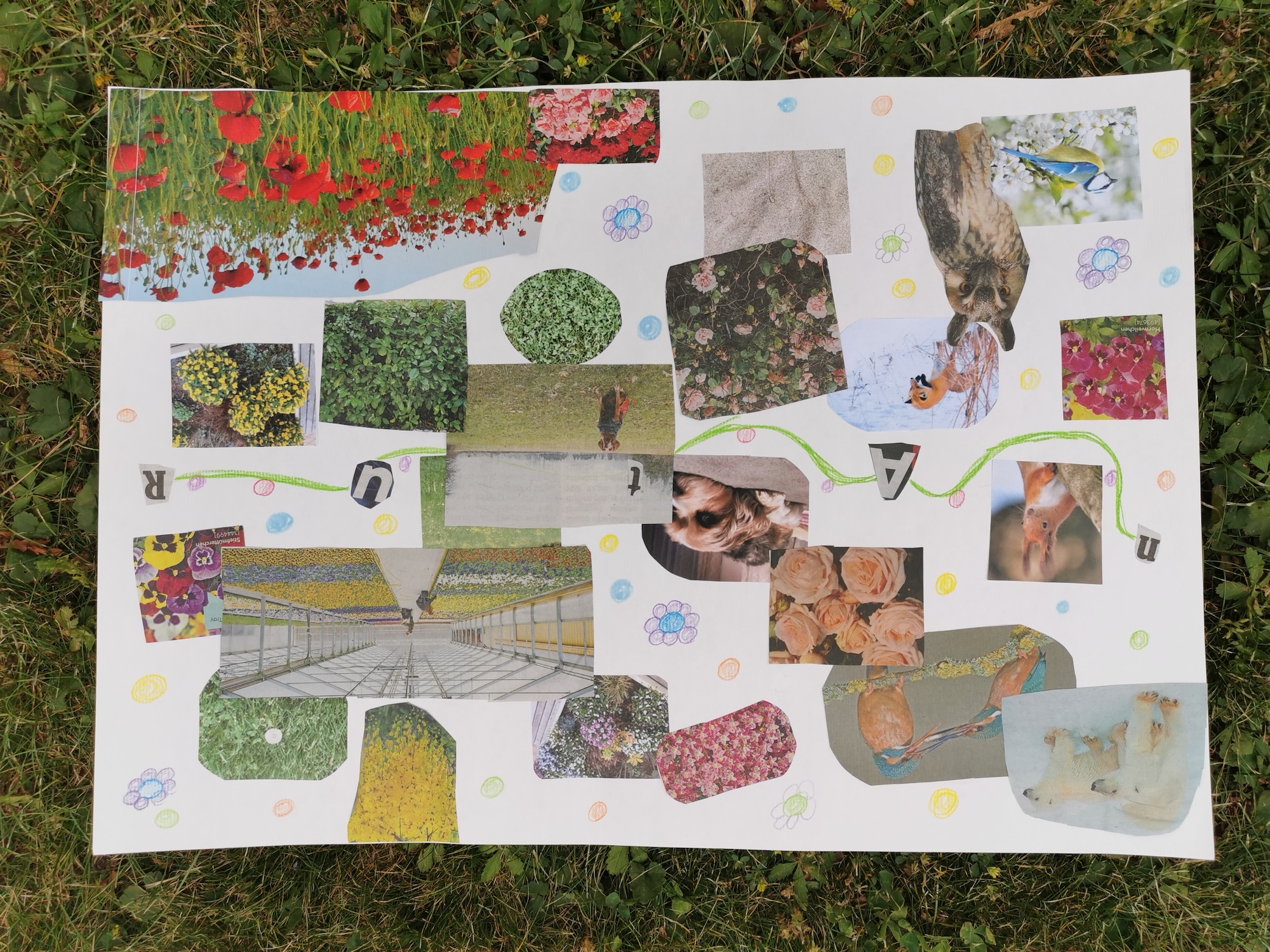 Im Kreativunterricht haben sich die Schüler:innen genau mit diesen Fragen beschäftigt – und ihre Ideen in fantasievollen Collagen umgesetzt. Dabei entstanden farbenfrohe Bilderwelten voller Hoffnung, Mut und Vorstellungskraft.