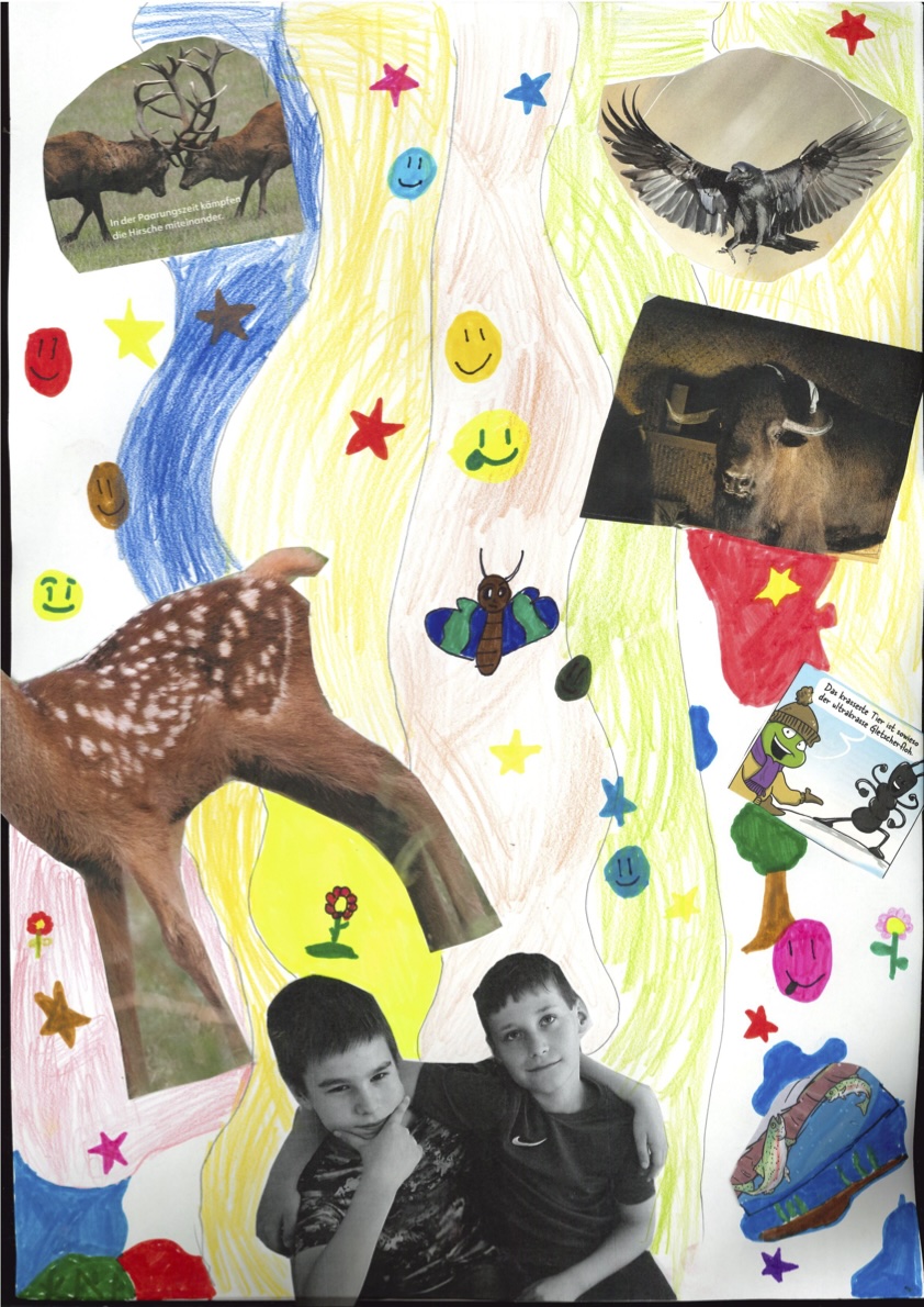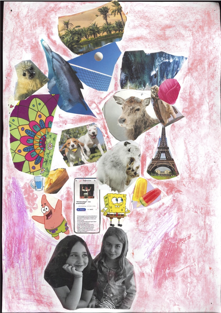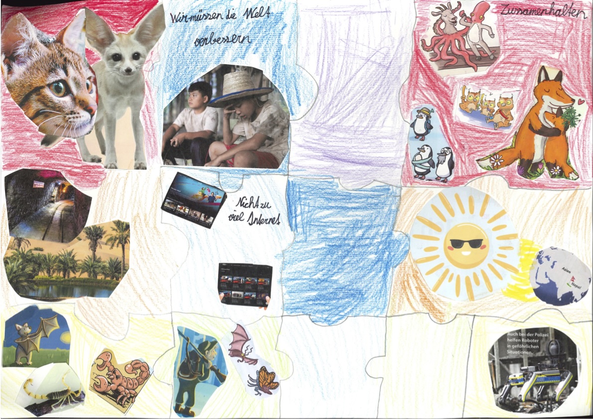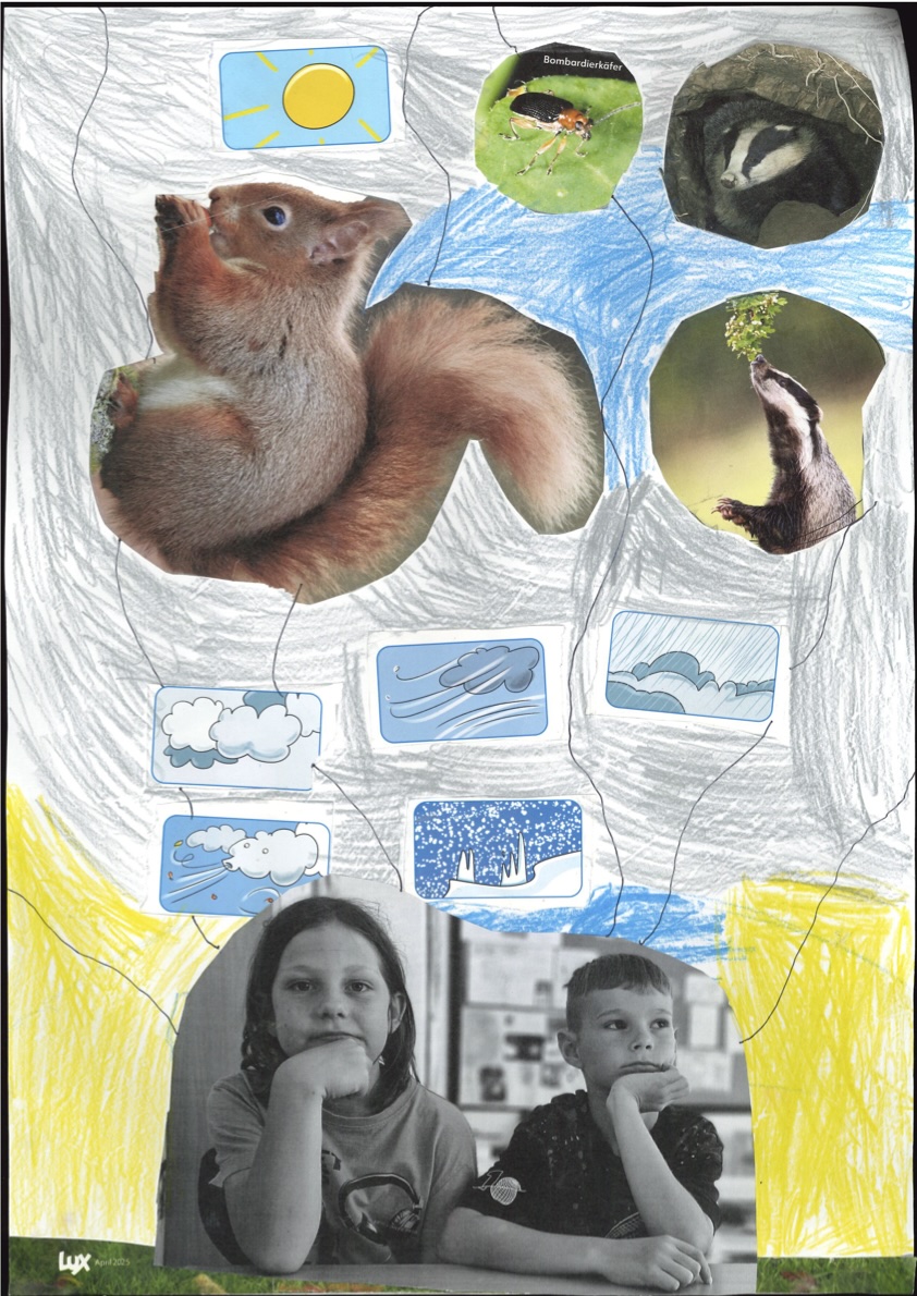 Wir Kinder haben Collagen gestaltet und überlegt: Wie können wir in Zukunft gut mit der Natur zusammenleben? Unsere Bilder zeigen Wünsche, Ideen und Träume für ein gutes Leben für alle – schaut sie euch an und lasst euch inspirieren!